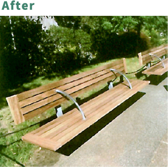 日差しや風雨で劣化した公園内の木製ベンチも大掛かりな養生作業なしに洗浄可能。すばやく木の美しさがよみがえります。