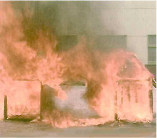ファイアーカットを塗布した小屋はガソリンだけが燃え、引火や延焼を防止。紙ヤスリで元の木目がよみがえります。ファイアーカットを塗布した木材にガラス改質処理を行うことで美観を損なう白華現象を抑止。木材の活用範囲いが広がります。