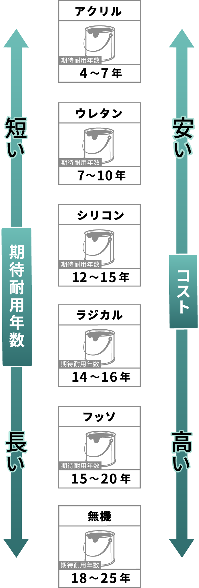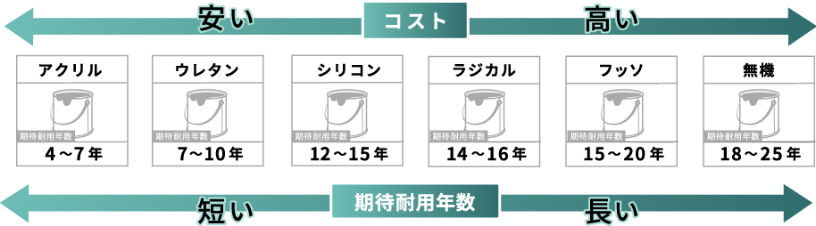 塗料には、遮熱・断熱など他にもさまざまな機能のものがあります。予算をふまえお住まいに合った塗料を相談し選びます。